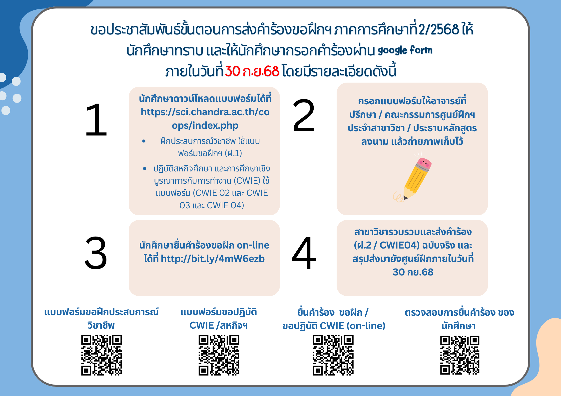 3. ยื่นคำร้อง ยื่นคำร้องขอฝึก / ขอปฏิบัติ CWIE http://bit.ly/4mW6ezb