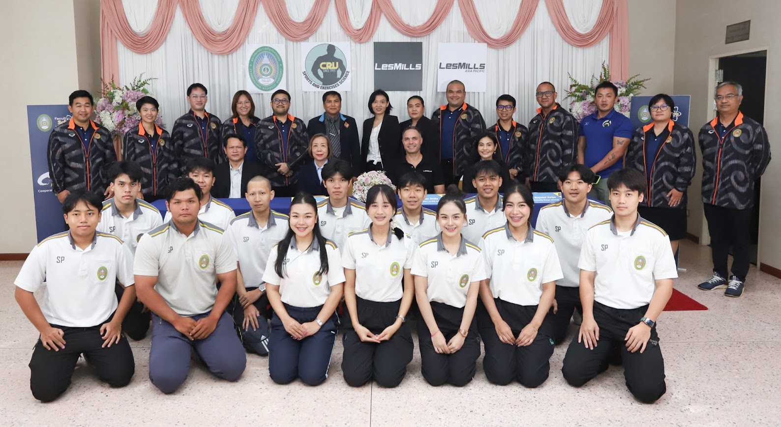 พิธีลงนามบันทึกข้อตกลงความร่วมมือทางวิชาการด้านการพัฒนาหลักสูตร สาขาวิชาวิทยาศาสตร์การกีฬาและการออกกำลังกาย ระหว่างมหาวิทยาลัยราชภัฏจันทรเกษม และ LES MILLS ASIA PACIFIC วันที่ 1 พฤศจิกายน 2567 ณ ห้องประชุมมานิจ ชุมสาย ชั้น 4 อาคารสำนักงานอธิการบดี