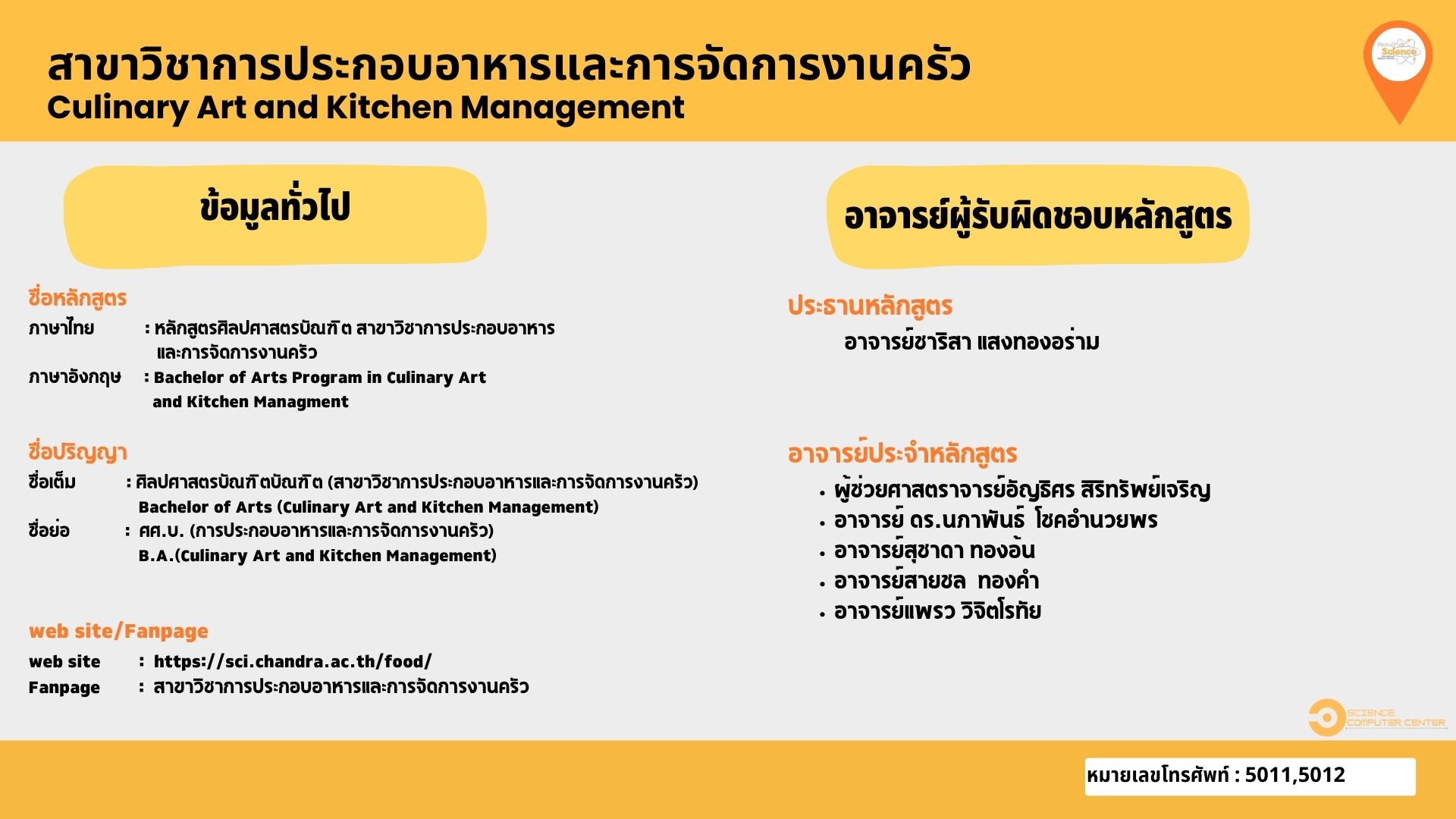 ศิลปศาสตรบัณฑิต สาขาวิชาการประกอบอาหารและการจัดการงานครัว ปรับปรุง 2564