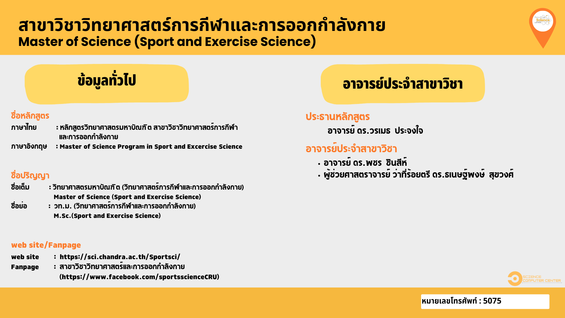 หลักสูตรวิทยาศาสตรมหาบัณฑิต สาขาวิชาวิทยาศาสตร์การกีฬาและการออกำลังกาย | |