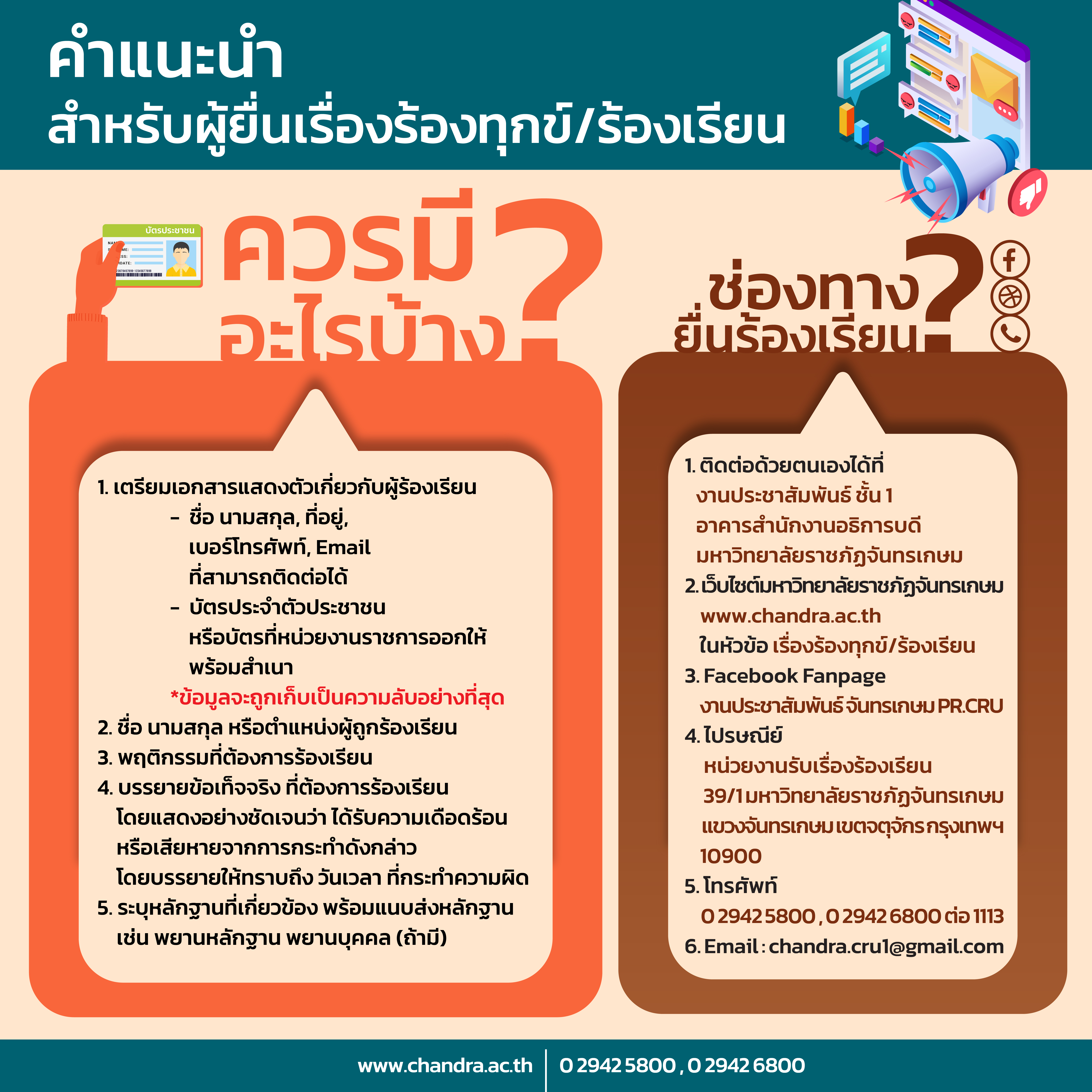 - คำแนะนำสำหรับผู้ยื่นเรื่องร้องทุกข์/ร้องเรียน